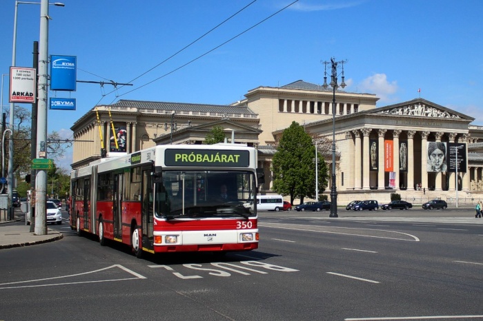 (02.05.2012) Der Budapester Gelenkobus 350 vom österreichischem Typ ÖAF Gräf & Stift NGE 152 M18, ehemaliger Eberswalder Gelenkobus 040, hat bereits mehr als 250 km der vorgesehenen 1000 km Testfahrten in Budapest/H absolviert und dabei beinahe das gesamte Budapester Obus-Netz abgefahren. Die Testfahrten verliefen sehr erfolgreich. Lediglich einige kleine Einstellungen wurden noch nachgeregelt. Erste Fahrer schätzten das Fahrzeug als gut ein.